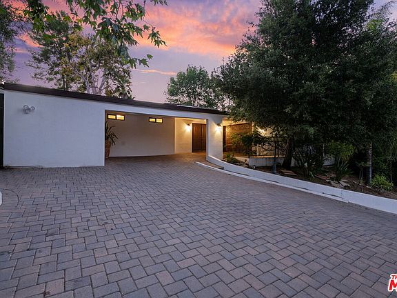 Welcome to Caritina Estates, a hidden mid-century gem and tranquil haven nestled in a secluded cul-de-sac just south of the boulevard in Tarzana. This exquisitely updated single-story residence commands attention with its 2,702 square feet of refined and elegant living space, set upon a sprawling 18,904 square foot lot. The home is masterfully designed to offer both comfort and contemporary luxury, featuring four spacious ensuite bedrooms, including two sumptuous primary suites. The residence's intelligently crafted layout harmonizes functionality with style, featuring warm hardwood floors that seamlessly guide you through the main living areas. In contrast, the kitchen and bathrooms are adorned with sophisticated ceramic and tile flooring, elevating the home's aesthetic appeal. At the heart of the home lies the Chef's Kitchen, a culinary dream equipped with a built-in refrigerator, sleek Ceaserstone countertops, and a modern backsplash and stainless steel appliances. Set amidst the serene backdrop of a canyon, this kitchen is perfectly poised for hosting lively gatherings by the pool or enjoying delightful alfresco dining amid the lush fruit trees. Step into the lush, private backyard, a true oasis crafted for both entertainment and serene retreats. The sparkling swimmer's pool beckons relaxation, while a dedicated BBQ area simplifies outdoor dining. Multiple outdoor living spaces offer idyllic settings for morning coffee or evening soirees. Beyond the immediate yard, the property extends into a generous orchard, home to 34 low-maintenance fruit trees. Here, one can harvest an array of fruits, from limes, lemons, and apples to diverse varieties of guava, pears, and other tropical delights, creating an environment that is as self-sustaining as it is enchanting. Adjacent to the main house, discover a versatile bonus room equipped with its own split AC system. This flexible space is perfect for a home office, yoga studio, creative haven, or simply additional storage. 4745 Caritina Drive represents a rare fusion of thoughtful design, abundant natural beauty, and contemporary amenities. It offers an unparalleled opportunity to bask in elegance, privacy, and a profound connection to nature, all within one of Tarzana's most sought-after neighborhoods.