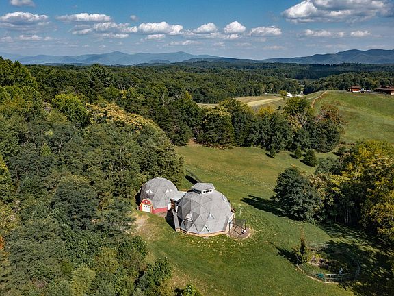 Stunning Mountain views surround this nearly 30 acres of mixed pasture, forest, lawns and gardens. Located between the Blue Ridge Mtns and the western Alleghenies, this unusual and stunning property invites you to bring your horses! Perfect property for homesteading! Solar panels reduce heating bills to next to nothing. 2 well-built Dome homes, attached by an elegant main entrance, are full of light and constructed for energy efficiency. Lots of space for gathering of family and friends -- both indoors an out. The Main Dome features a spacious open floor plan including a kitchen, dining area, and Great Room. 1st floor Primary Suite! An artistic spiral staircase takes you to the 2nd level: 2 Guest Bedrooms, a bath, laundry and storage. Ascend to the 3rd level cupola with 360 views.