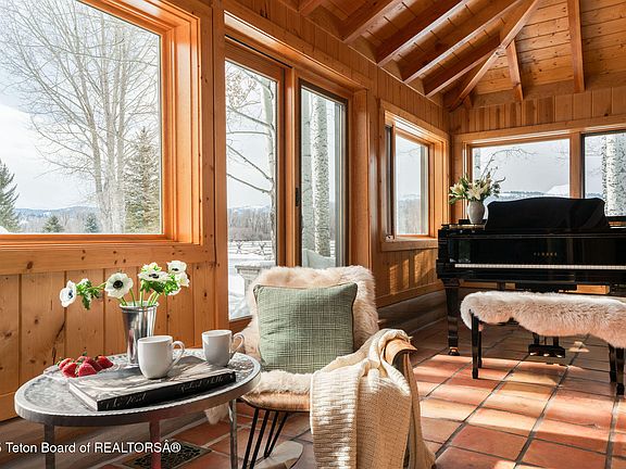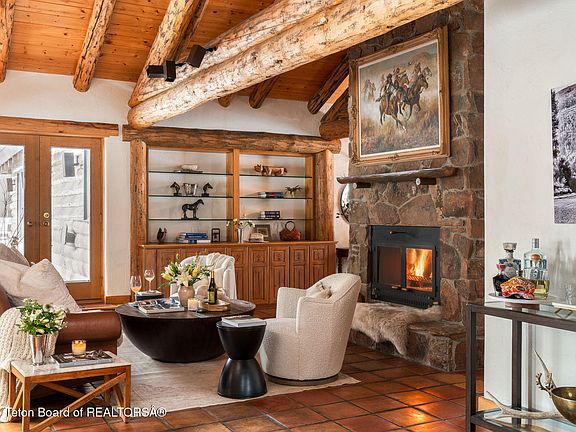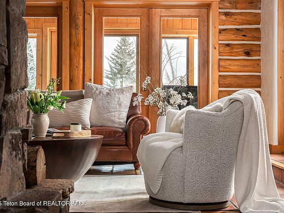 Discover Western Star, a charming 3,110-square-foot log-crafted home nestled on 8 serene acres in the scenic Shootin' Iron Ranches neighborhood. This peaceful retreat captures the rugged beauty of Wyoming, offering a rare combination of privacy, natural splendor, and convenience—just 10 minutes from downtown Jackson.