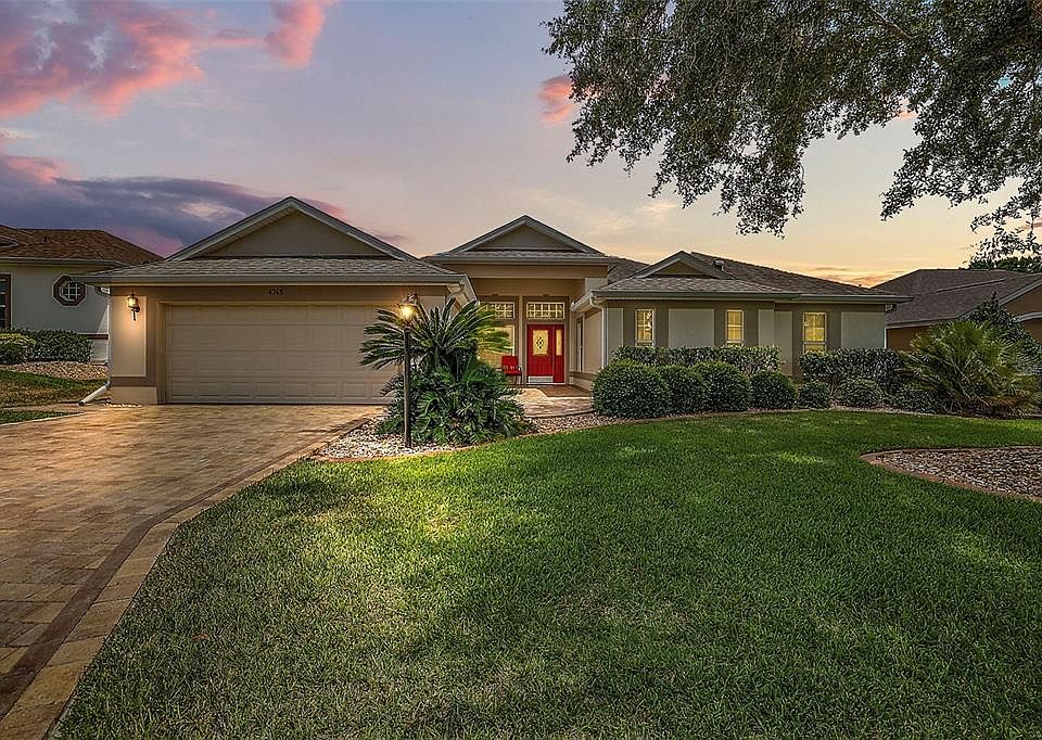Welcome to your dream home in The Plantation at Leesburg, a 55+ gated golf community. This exquisite residence offers stunning golf course frontage, providing you with picturesque views and serene surroundings.Step inside to discover a spacious, open-concept layout with high ceilings that create an airy, welcoming atmosphere. The large kitchen is a chef's delight, featuring elegant 42-inch cabinets, a central island, and an inviting design that seamlessly flows into the family room, perfect for entertaining and family gatherings. The home boasts double primary bedrooms, each offering comfort and privacy, along with a convenient half bath. You'll appreciate the beauty and durability of tile flooring throughout the entire home, adding a touch of sophistication to every room. Equipped with a Fertifator system, maintaining your lawn and garden will be a breeze. The premier 18 SEER Infinity HVAC system ensures year-round comfort with its constant quiet flow and Wi-Fi thermostat, allowing you to control the temperature effortlessly. Practical features such as gutters, a French drain on the north side, and termite protection provide peace of mind. Energy efficiency is enhanced by the 3M film on the windows, and the home's roof was newly installed in 2016, adding to the property's value. The large lanai overlooking the golf course is the perfect spot to relax and enjoy the tranquil views, whether you're sipping your morning coffee or hosting an evening gathering. This home is a perfect blend of luxury, comfort, and practicality, designed to offer you a premium lifestyle in one of Leesburg's most sought-after communities. Welcome to your new sanctuary at The Plantation at Leesburg.