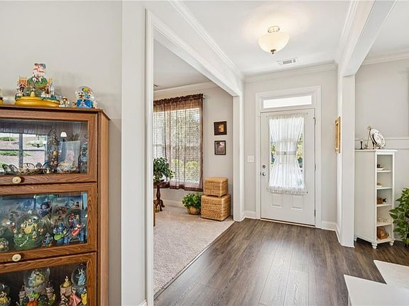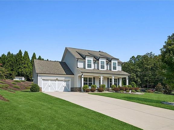 Stunning, like new property in the desirable Georgian Acres community. This 4 bed / 3 bath home sits on an expansive 0.81-acre lot in a peaceful cul-de-sac, offering both privacy and excellent curb appeal. Step inside to an inviting foyer that opens to formal dining and study. The gourmet kitchen shines with oversized entertaining island, granite countertops, upgraded white cabinetry, tiled backsplash, appliances, walk-in pantry, and open sight to the family room. Upstairs you'll find an impressive master suite with a spa-style bath featuring separate tub & shower, dual vanities, and a huge walk-in closet and additional storage room. The secondary bedrooms are generous in size. Main level bedroom also included for flexibility. Outside enjoy a spacious, backyard which is beautifully maintained and landscaped, perfect for relaxing or entertaining. Large custom shed is a great add allowing for ample storage for yard equipment! Exterior house trim was painted in 2023 new shed installed 2025. All Kitchen appliances and laundry appliances included in sale. Community amenities include walking trails, pool, playground, sidewalks, and street lights. Top-rated Cherokee Bluff schools serve this property. A wonderful blend of modern finishes, quality construction, and premium lot in a convenient location!