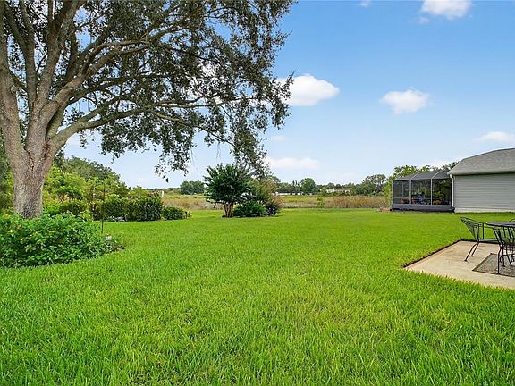Welcome to this perfectly maintained 3-bedroom, 2-bathroom home located in the award-winning Plantation at Leesburg community. With an open floor plan, this home offers a spacious, light-filled kitchen featuring ample counter space, plenty of cabinets, and a cozy 13 x 10 dinette area — ideal for everyday meals or casual gatherings. The split floor plan provides privacy for the owner’s suite, which includes a walk-in closet and a private bathroom. The additional two bedrooms are well-sized and include generous closet space, perfect for guests or extra storage. The living and dining areas flow seamlessly, creating a comfortable and welcoming space for relaxing or entertaining. Step outside to your enclosed 27 x 10 lanai, where you can enjoy the peaceful view of your private backyard — a perfect spot for morning coffee or quiet evenings. Recent updates include double-pane windows, a newer hot water tank, a newer roof (2023), and a newer AC system (2023), offering peace of mind and efficiency for years to come. This gated, 55+ neighborhood offers a vibrant lifestyle with something for everyone: three swimming pools, two fitness centers, three clubhouses, a billiard room, a softball field, two golf courses, tennis courts, and popular pickleball courts. Take your golf cart to the on-site restaurant for lunch, dinner, or weekend live music and specials. With a low HOA fee and 24-hour manned security gates, this community combines comfort, convenience, and fun — all just minutes from shopping and everyday needs. This home is move-in ready and waiting for you to enjoy everything The Plantation has to offer.