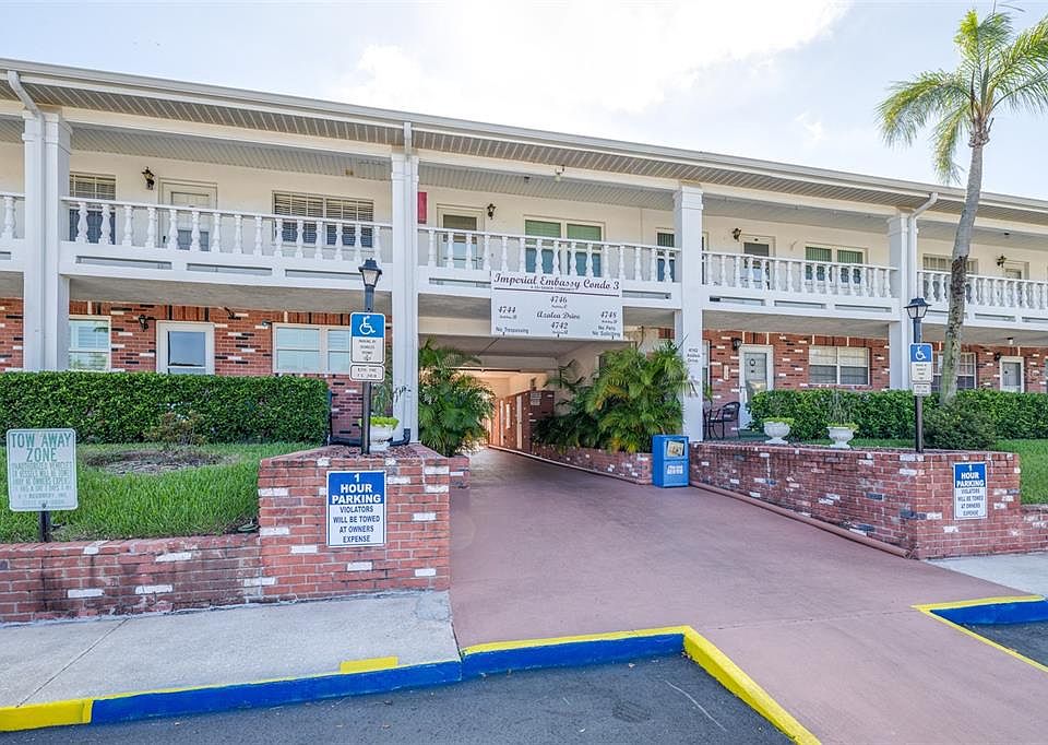 PRICE IMPROVEMENT! PRICED FOR IMMEDIATE SALE! If you’re looking for a move-in-ready, first floor unit with an oversized garage, you have arrived. Imperial Embassy condos is an age-restricted (55+) community located in a non-flood zone within a mile of New Port Richey area shopping and restaurants. This 1 Bedroom 1 Bathroom condo is the perfect place to retire and call home. Included in the LOW condo/HOA fee ($344 monthly) is water, trash, cable and WIFI plus all the amenities and garden maintenance. You have direct access to the pool in front of your new unit, laundry unit close by and meeting areas where many activities are planned are straight ahead. This community is highly rated as warm and friendly among its residents, some of whom are snowbird vacationers, and many who live here year-round. But wait! Lots of light and a great vibe. Sorry - no pets allowed and no short-term rentals. Long term rentals allowed after 18 months of residency. Cash or conventional financing. Come and book your showing today!