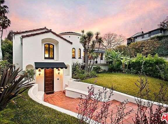 Romantic Los Feliz Spanish completely renovated with the highest quality finishes and craftsmanship. The grand living room features a two-story barrel vaulted ceiling, custom tile mosaic fireplace and a wall of French doors leading to the covered porch. The gourmet kitchen with custom island and chef's quality appliances is open to the breakfast area and family room. A spacious bedroom with custom cabinetry and ensuite bathroom complete the main floor. A dramatic spiral staircase leads to the upper floor with three bedrooms, two bathrooms and two private balconies. The master features a light-filled seating area, large walk-in closet, make-up vanity, a sumptuous spa bathroom and a large tiled balcony. The lower level has a large office/guest suite and laundry room. Flat grassy yard, sparkling pool and two car garage.