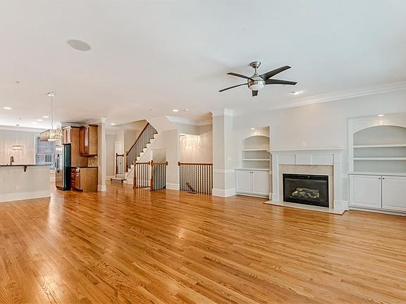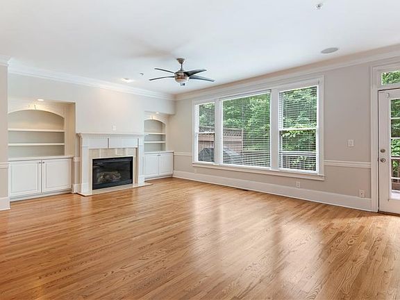 This pristine three-level townhome is located in The Cove at Vinings Estates, an exclusive gated enclave of just 35 residences built by renowned builder John Wieland. The home features four bedrooms, three and a half bathrooms, and has been recently updated with new paint while showcasing numerous designer details and soaring 9 & 10 foot ceilings. The main level welcomes you with a flowing, open layout highlighted by rich hardwood flooring and detailed crown molding that spans the entire level. The spacious living area centers around a fireplace flanked by built-in shelving and integrated audio. The chef's kitchen is appointed with granite surfaces, a generous center island, premium stainless appliances including a gas cooktop, custom cabinetry with stain finish, a pantry, and casual dining options. A separate formal dining area connects seamlessly to both the kitchen and living spaces, and onto an elevated deck overlooking wooded surroundings - perfect for outdoor relaxation and dining. A powder room rounds out this level. Upstairs, the owner's suite impresses with cathedral ceilings. The private bathroom evokes a spa experience with his-and-her sinks, a deep soaking whirlpool tub, a glass shower, and a generous, custom walk-in closet. Two additional well-proportioned bedrooms share a full hallway bathroom (with one offering direct access), and the laundry facilities are conveniently located on this floor. The ground level provides a fourth bedroom with full bathroom - easily adaptable as guest quarters, entertainment space, fitness room, or work-from-home office. This level features its own separate entry and connects to the oversized two-car garage with bonus storage. The location offers exceptional convenience to the Silver Comet Trail, major thoroughfares including the East/West Connector and I-285, and the vibrant Smyrna/Vinings area. Truist Park and The Battery's dining and entertainment district are minutes away, as is Cumberland Mall. Downtown Atlanta and the airport are easily accessible. The home offers membership to Vinings Estates' impressive amenities: three pools, tennis & pickleball facilities, a playground, a basketball court, hiking trails, a grilling pavilion, a clubhouse and a complete fitness center. All of these amenities are included in the $730 annual fee.
