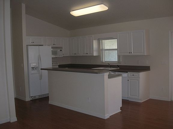 Ocala - Marion Oaks. 4-bedroom single family house. Newe and large home (1615 square feet of living area). Large Living room with cathedral ceiling. Dining room, four bedrooms. Master bedroom has walk-in closet, double sinks, tub, and shower. Second bathroom has a walk-in shower. Kitchen has Refrigerator, stove, dishwasher, and a microwave oven. Laundry room has washer/dryer hookups. Two-car garage. Total Square footage is 2495. This large family home overlooks a large backyard. Close to school. Easy access to I-75 to enjoy Central Florida cultural events. No pets.