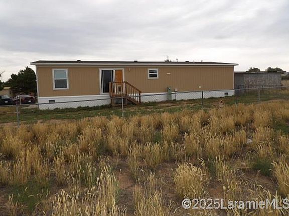 Here is an inexpensive living option for someone looking to move to Laramie quick and find housing. 2022 double wide (28x56) 4 bedroom, 2 bath located in a large corner lot at the South East corner of the Mobile Home Park. Complete with storage shed and a fenced backyard for your dogs. Nice insulated skirting with vapor barrier in the crawl space. Located close to the new Laramie High School as well as Walmart. HOA fee is $625/mo and includes water, sewage, and trash.