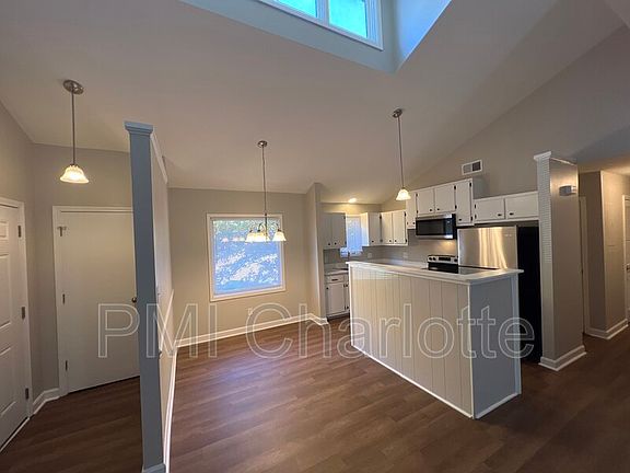 Recently renovated, LARGE, apartment unit located in Concord near Mt Pleasant. This quad unit has three bedrooms and two bathrooms, an open floor plan, vaulted ceilings in living room, kitchen island, dining area and LVP flooring (NO CARPET). Peaceful setting includes private deck with storage closet overlooking wooded backyard. Garbage pickup is covered by landlord. All other utilities (electricity and water) are tenant's responsibility. Conditional Pet approval (one cat; no dogs). Resident liability insurance is required. PMI of Charlotte requires an extensive background and credit check for all potential candidates. Non-refundable $50 application fee per adult is required and must be paid online.