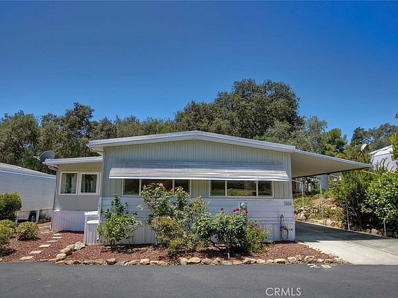 Nestled in the heart of the serene and picturesque Oak Crest Estates, this charming 3-bedroom, 2-bathroom manufactured home offers a perfect blend of tranquility, modern comfort, and community living. Spanning approximately 1,200 sq. ft., this inviting residence is situated in a 55+ co-op, land-owned community, providing an affordable and vibrant lifestyle surrounded by Fallbrook’s breathtaking natural beauty. Step into a light-filled, open-concept living space designed for comfort and relaxation. The spacious living room flows seamlessly into a formal dining area, ideal for entertaining guests or enjoying quiet evenings at home. The well-appointed kitchen boasts ample cabinetry and a functional layout perfect for preparing meals with ease. The primary suite features an en-suite bathroom for added privacy and convenience. The second bathroom is tastefully updated, offering a tub/shower combo. Additional highlights include newer flooring, double-pane windows, central heating and air conditioning, and a washer/dryer for in-home laundry. Outside, a covered carport accommodates two vehicles, and a storage shed provides extra space for gardening tools or seasonal items. The low-maintenance lot is adorned with native landscaping, complementing the community’s commitment to preserving the natural surroundings.