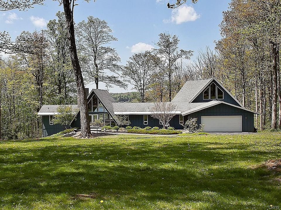 Located at the top of a ridge just outside the village is a magnificent chalet offering everything you want in a dream home. From just about anywhere in the home you can see out the impressive windows catching endless amounts of natural light from the west overlooking lovely Cazenovia lake. Stunning interior complimented by wood ceilings/timber framed beams/maple flooring/4 fireplaces/California closets.The kitchen offers granite countertops, stainless steel appliances and a breakfast bar with eat in dining with those stunning views! The great room is just that. Cathedral ceiling so high that you will feel like you're in an observatory when the stars come out. Did I mention the indoor endless lap pool that doubles as a Jacuzzi? Glenwood Association lake rights.Additional 32 acres Available MLS1093086