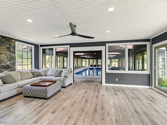 Discover this unique property tucked away on nearly 6 private acres, set 500 feet off the road for unmatched privacy. The home has just been refreshed with numerous updates, including fresh paint, new carpet, LVT flooring, select window replacements, and newer roofs on house, garage and pool house. The residence offers expansive living space along with an attached pool house featuring a in-ground pool with diving board (3–9 ft depth) — perfect for swimming laps or year-round enjoyment.