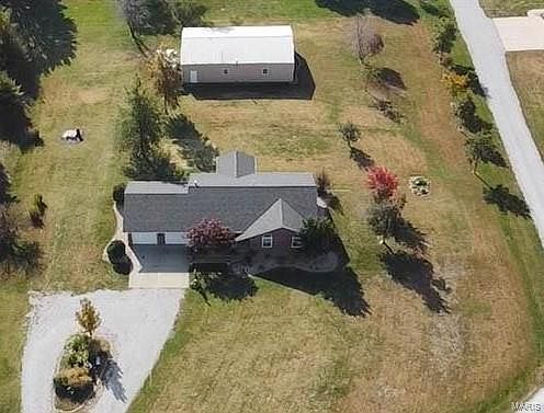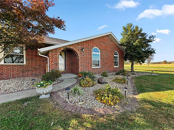 Tucked away, on the outskirts of town, this 3 bed, 2+ bath RANCH on 2+ ACRES w/over 1740 sq. ft. has something for everyone! Your own private oasis, this well-maintained home in Smithton/Freeburg School District has arched brick front porch & 2+ car attached garage. Semi open w/spacious living room, vaulted ceiling, large picture window, gas fireplace & open dining. Beautiful kitchen w/attached island, granite, vaulted ceiling, stainless appliances & reconfigured gorgeous WALK-IN pantry. Laundry off kitchen w/sink & storage. Large master bedroom suite w/fresh flooring, large walk-in closet, bath w/double storage towers, granite vanity & walk in shower. 2nd & 3rd beds are large w/arched windows for lots of light, one w/a cedar lined closet. Hall bath w/ceramic tile, single vanity. French doors out to backyard COVERED PATIO. 56 x 36 HEATED CAVE/PARTY BARN/DETACHED BASEMENT w/metal ceiling, metal walls & HALF BATH. 2024 ROOF AND GUTTERS! 2nd shed w/overhead doors.