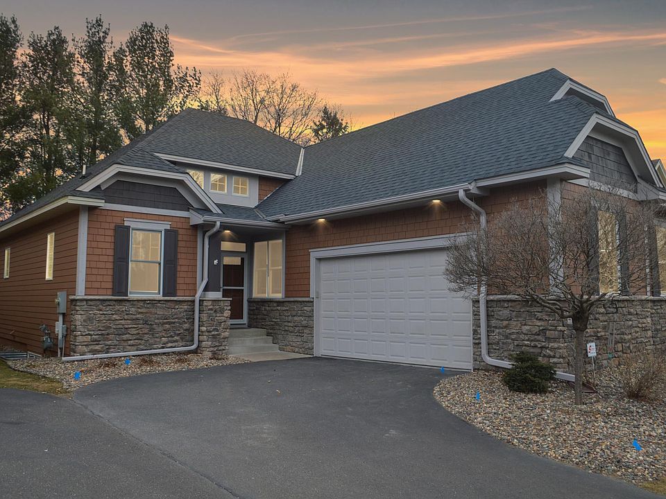 This gorgeous one level living, detached townhome offers the perfect layout for everyday living, while still providing great entertaining space for family and friends. Updates galore mean you can move right in and enjoy! Featuring a new roof, appliances, flooring, lighting, and so much more. The main floor has everything you need: an open layout, primary bedroom, suite, laundry and a half bath, and a great den. The two-sided fireplace warms both the living room and primary bedroom and the private, primary bathroom will be your spa-like retreat at the end of a long day. Don't miss the fantastic storage in the garage and the brand new maintenance free deck just off the breakfast nook! The lower level has a massive recreation room with another cozy fireplace, built-ins, a wet bar, two bedrooms, a full bath and a flex room with so many possibilities. This level is also roughed-in for in-floor heat. Conveniently located near all the amenities that Shoreview has to offer. Don't wait!