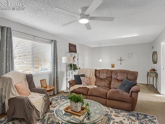Beautiful Bi-Level, three bed, two bath, oversized two car garage conveniently located and close to Peterson Air Force Base! NEW central air conditioning and Electrical panel upgrade (2024)! Newer furnace (2020), new kitchen countertops and updated vinyl windows. Recently painted interior trim and some doors. The upper level boasts a large living room, separate dining space and the kitchen has new countertops! Two beds on this level to include the primary and a full bath. The lower-level family room measures 11 x 30 and has a wood burning fireplace. The third bedroom is on this level with an updated three-quarter bathroom with custom shower tile surround and pedestal sink. The laundry room / storage room is on the lower level as well and the front load washer and dryer are included. Fully landscaped and the back yard is fully fenced and has raised planting beds along with a storage shed and the hot tub is included!