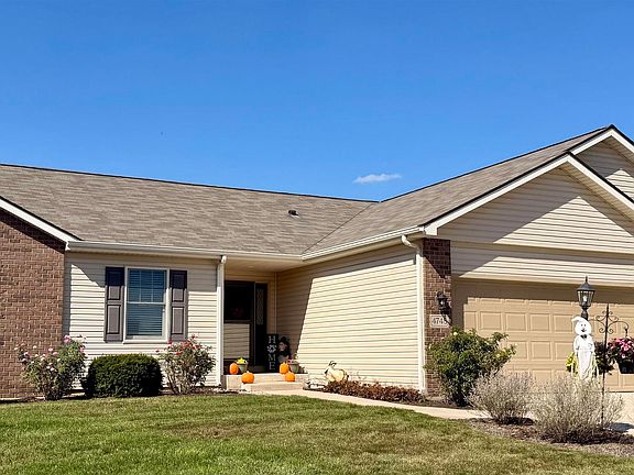 Ranch that’s only 10 years old on full, partially finished basement with a 45’ x 16’ rec room! FRESH carpet and FRESH paint throughout! FENCED IN backyard! This gorgeous, well maintained home has a 3-car garage with additional storage in the 3rd bay, 3 beds, 2 baths and an open layout including a Vista View kitchen that overlooks the cathedral ceilinged great room. The beautiful cabinets in the kitchen are custom made. LOTS of food storage is available in the 6’ x 6’ walk-in pantry. The primary bedroom has a very nice walk-in closet and full bath. Energy efficient Andersen windows!