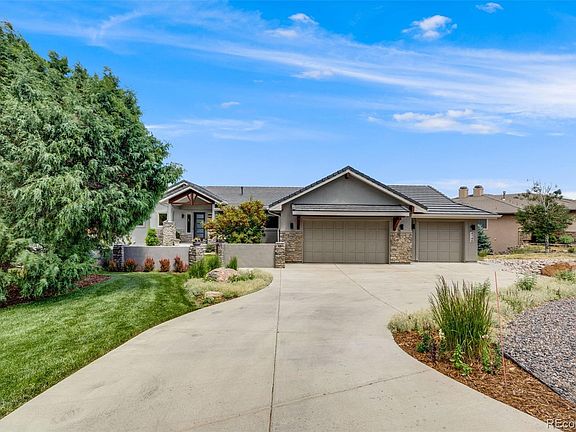 Views! Let’s start with those views! An unobstructed and stunning view of the spectacular Roxborough State Park Red Rocks! Run, walk, hike, or bike the miles of Roxborough Park trails. This stunning & modern custom ranch home meticulously designed for these views, the owners purchased the land to build the Dream Home! Vaulted ceilings & beautiful wood beams once you enter the front door off the private front courtyard and porch. Hickory wood floors throughout the main level. Modern gourmet kitchen boasts soft-close cabinets, SS appliances, gas range, hood, convection oven, quartz counters, tile backsplash and walk in pantry that is a surprise once you open the doors to walk in it. The rooms are all spacious, open and bright with natural light. The primary bedroom and bathroom on one side of the home, which includes a huge walk in closet, then wraps into the laundry room and mud room. The other side of the main level is another bedroom/office and full bathroom. Head downstairs with the wrought iron railings to a large living room looking onto the views again and a walkout feature onto a large patio. Rough in plumbing for a future wet bar area, 2 more bedrooms and a full bath and a huge unfinished storage room with shelves. New carpet & hickory wood flooring all refinished like new. The amazing back deck is covered and such a treat to sit and watch wildlife, the sunrise or sun setting on the red rocks and watch them glow. This home has privacy and the lot is flat. The driveway to the 3 car garage is also flat as many in the area are up a hill. Situated within the upscale championship Arrowhead Golf Course community and 7 Minutes from the 1,423-acre Chatfield State Park and reservoir. Floor plans in MLS supplements to view. Virtual Tour, Interactive Floorplan included.