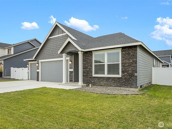 Discover this stunning 3-bedroom, 2-bath home in the desirable Mae Valley area of Moses Lake. With 2,053 sq ft of living space, this home features a bright open floorplan, quartz counters in both the kitchen and bathrooms, and a spacious primary suite. Step outside to a covered patio with built-in lighting, perfect for outdoor dining or relaxing year-round. The partially fenced yard with vinyl fencing adds privacy and easy care, while the attached 3-car garage provides convenience. A stylish, move-in ready home in a sought-after location close to golf, lake access, and all that Mae Valley has to offer!
