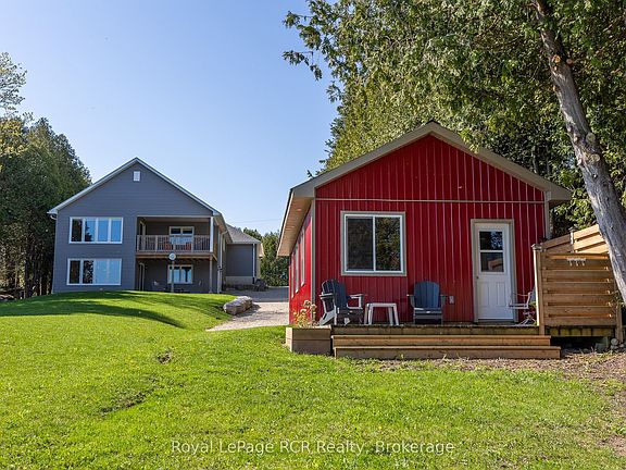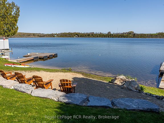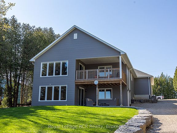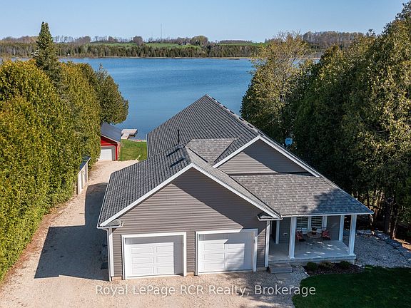 Lakeside living on Townsend Lake. Built in 2021, the 1455 square foot bungalow is situated to take full advantage of the water views in a serene setting. Perfect window placement gives a picture frame of the lake from much of the home. Open kitchen and dining areas flow to the living area with vaulted ceilings and a walkout to the covered balcony. Main floor primary suite on the lake side includes ensuite and walk-in closet. A full bath, 2nd bedroom and laundry room complete the main level. The finished lower level features a 3rd bedroom, 3rd bathroom, family and rec rooms with waterfront views and walkouts to the covered patio and yard. With an oversized double attached garage and a detached garage at the lakeside, ideal for storage or would make a great studio space. The outdoor spaces are complete with an on demand generator, the dock, beach, hardscaping and lush grass. You will appreciate the many fine features this property has to offer from the moment you have a private tour! Located in an area with endless four-season activities; 15 minutes to Markdale or Durham.