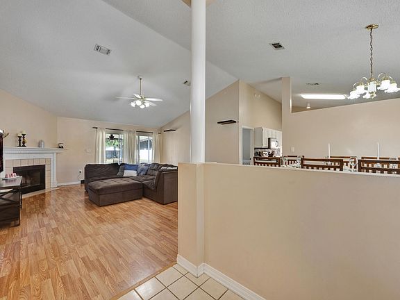 Screened-in porchVaulted ceilingsWood-burning fireplaceFormal dining roomTile and laminate flooringTiled entryLarge kitchen