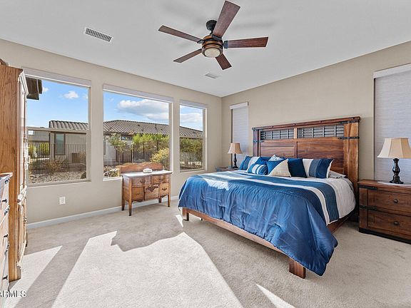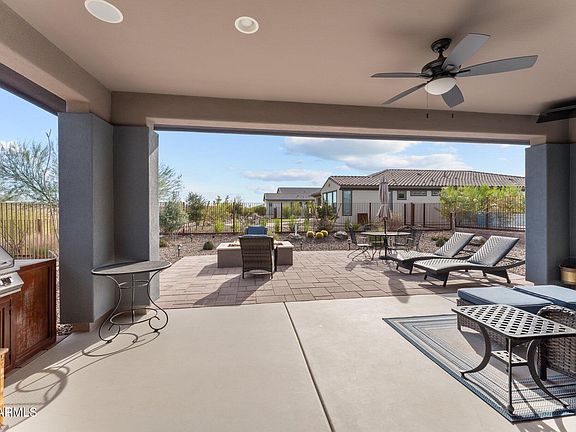 .Located in the picturesque Wickenburg Ranch community, this charming home boasts an array of desirable features perfect for modern living. Upon entering, you're greeted by a spacious covered porch, ideal for enjoying the serene surroundings. The heart of the home is its beautiful kitchen, complete with a large island that provides ample space for cooking and entertaining. Natural light floods the open living space thanks to a large wall of sliding glass doors, seamlessly blending the indoor and outdoor areas. Step outside onto the covered back patio, where you can unwind and dine al fresco while taking in views of the landscaped backyard adorned with a built in firepit and outdoor kitchen. This thoughtfully designed home offers 2bed, 2 baths, and den/office with rustic barn doors for privacy. The home provides comfortable accommodations for both residents and guests. Additionally, a two-car garage provides convenient parking and storage space. Whether you're relaxing indoors or enjoying the outdoor amenities, this Wickenburg Ranch home offers the perfect blend of comfort and style in a breathtaking desert setting.