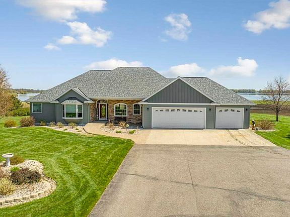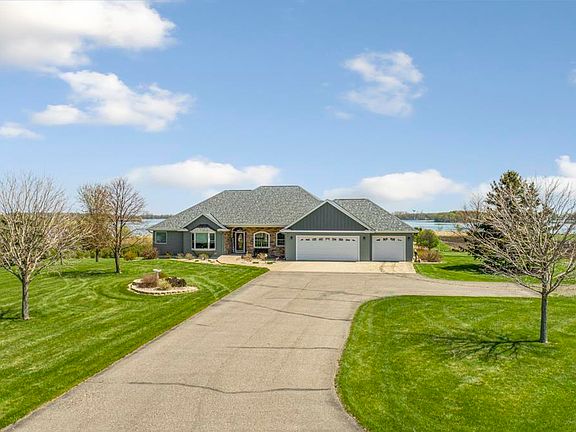 This stunning home is a rare find and is sure to catch your eye! The main level boasts a beautiful great room with many south facing windows, vaulted ceiling and a 3 sided stone fireplace that leads into an open concept kitchen and dining room. Dining room has a door leading to the upper level deck that oversees the breathtaking views of Lake Titlow and endless prairie land filled with wildlife. Additionally, you will find a spacious primary bedroom with a walk in closet, sliding doors with deck access, walk thru bathroom which includes a walk in shower and jetted tub. Main level also has moderate sized bedroom and laundry room. Lower level provides 2 large bedrooms, family room perfect for entertaining. Tons of storage space throughout the lower level! Other amenities include forced heat, central A/C, lower level in floor heat and 3 stall attached, insulated garage! New siding, windows and roof all in 2024! Schedule your private showing today!