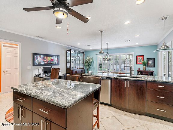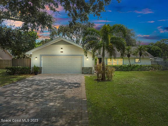This stunningly renovated 3-bedroom, 2-bathroom home is ideally situated in the heart of Vero Beach. Step inside to discover a spacious and inviting dine-in kitchen, complete with custom-built cabinetry, beautiful granite countertops, and high-end stainless steel appliances. The living room features vaulted ceilings and French doors that open onto a screened-in patio and paved garden area. The primary suite is a private sanctuary, with its own entrance to the patio, his and her closets, double vanity sinks, and a luxurious walk-in shower. Two additional guest rooms are located on the opposite side of the house, offering privacy and comfort. Recent updates include a new roof installed in 2022, a central A/C unit installed in 2020, and hurricane impact windows with custom blinds throughout.