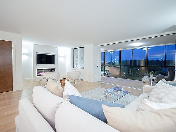 This is the best value LUXURY APARTMENT in West Vancouver. This absolutely stunning 1702 sq/ft. condo has been substantially renovated to the highest of standards. Features include an oversized master bedroom with walk-in closet, 2nd bedroom, den with an ocean view, a gorgeous new kitchen and bathrooms (with heated floors), separate laundry room, completely automated Control4 & SONOS sound system, security and 3 wall-mounted TV's. Incredible views of Stanley Park, Ambleside Park, the ocean to the south and the North Shore mountains to the north. An amazing location just steps to Ambleside Park, the Seawall, Earls, Meinhardt and Park Royal. THE HOME IS NOT OCCU.PIED, SANITIZED AND CAN BE SHOWN WITH GREAT SOCIAL DISTANCING CARE TO BUYERS WHO NEED A PLACE TO CALL HOME.