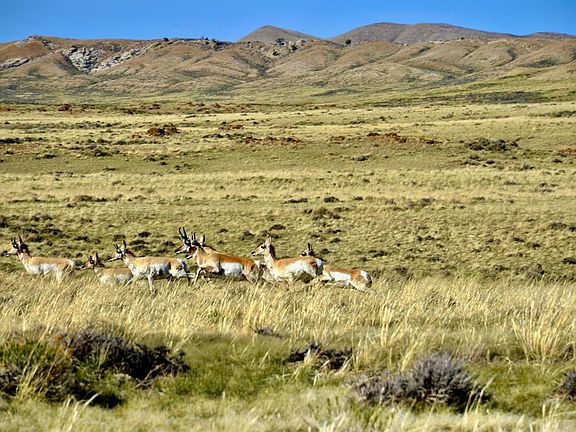 The ranch occupies the broad North Platte River bottomland at approximately 7000 feet elevation, along with the adjoining uplands and rocky Haystack Mountains. A mix of natural and irrigated grasslands, sagebrush, and rocky outcrops creates a classic "Wyoming mix" of habitat that serves big game herds of pronghorn, elk, and mule deer well. Hunting for these big game species, plus upland birds and waterfowl, is excellent on Haystack River Ranch.