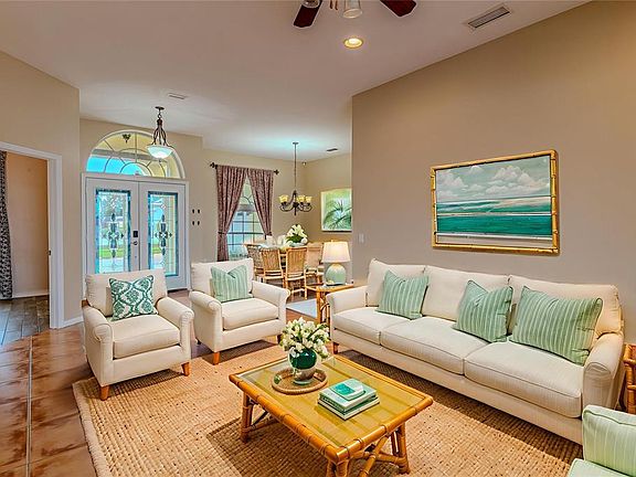 One or more photo(s) has been virtually staged. Welcome to your perfect sanctuary in the heart of Central Florida! With a freshly repainted exterior, this one-level home offers rare and breathtaking lake views and is ideally located in a desirable cul-de-sac. With 4 spacious bedrooms, 2.5 bathrooms, and an impressive range of high-end upgrades, this residence seamlessly combines comfort, style, and convenience. Upon entering, you’ll immediately notice the open, flowing floor plan, accentuated by soaring 10-foot ceilings and ceramic tile flooring throughout most of the home. Thoughtfully updated in 2021 with double-pane storm windows, the home ensures both energy efficiency and serene tranquility. The expansive, open kitchen, featuring stainless steel appliances, quartz countertops, an island, a breakfast bar, and a cozy nook with panoramic views of the lake. Whether entertaining guests or enjoying a peaceful evening, the breathtaking lake views from the family room, living room (with elegant triple glass sliding pocket doors), and oversized primary bedroom will leave a lasting impression. Step outside into your personal backyard oasis, where a spacious caged lanai with pavers, private salt water pool, provide the perfect space for both relaxation and entertainment. Beyond the lanai, you’ll find an oversized composite deck ideal for gatherings, leading to your backyard complete with an in-ground fire pit and mature fruit trees. A new seawall, completed in 2023, offers protection from storms and safeguards the yard. A private dock, complete with mooring whips for boat security and a dedicated fishing area, further enhances the outdoor experience. Additionally, a private boat pad on the side of the home provides convenient storage for your boat when it’s not on the lake. The primary bedroom is a true retreat, featuring a spacious ensuite bathroom with dual sinks, vanities, and a French shower. Three additional well-appointed bedrooms, a large laundry room, and a dedicated formal dining area complete the home’s exceptional layout. This home is also designed with remarkable energy efficiency in mind, featuring a 14.4KW REC/Enphase solar system paired with a 26.6KW battery backup. For over two years, the system has kept electric bills minimal (just a monthly connection fee) and even generates excess power, which is sent back to the grid to help offset the connection costs. With the battery backup, the home’ key areas remains fully operational during power outages, including the ability to run the entire air conditioning system. Additional peace of mind comes from the newly installed automated hurricane shutters on the lakefront windows, a screened front entryway, and a screened lanai cage. Enjoy further savings with a Wi-Fi-enabled irrigation system and pool pump, while Z-wave enabled switches throughout the home allow for easy automation and voice control for lights, fans, and the thermostat. For security, Ring cameras and a closed-circuit surveillance system monitor the home, in addition to ADT security. A whole-house water filtration system ensures clean, pure water, and cable or fiber internet is available. Pest prevention is also taken care of with Home Team ports on both sides of the home. Other notable upgrades include a new roof (2021), a new AC unit (2020) with a 10-year warranty, and additional energy-efficient features that help save on utilities. Homes like this are rare, so don’t miss your chance to experience this stunning property.