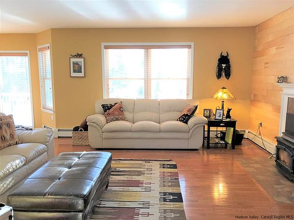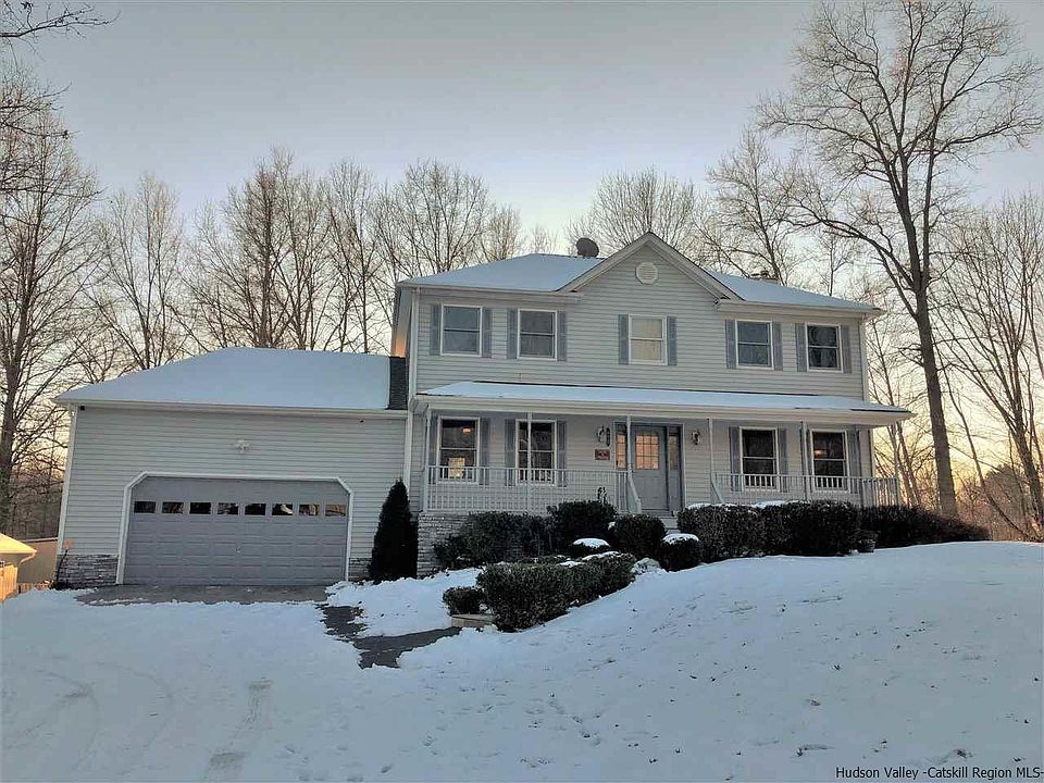 CHARMING GATED, FOUR BEDROOM COLONIAL IN SHAWANGUNK - Nestled at the base of the magnificent Shawangunk Mountains, this beautiful country colonial in its idyllic, tranquil country setting can be yours. This home features four bedrooms and 2.5 baths. Grand, two story entry foyer. The first floor is open concept offering a large living room, formal dining room, family room, kitchen with dining area, and powder room. The kitchen has granite counters with a peninsula style breakfast bar, tiled back splash, tiled floor, gas stove, all stainless steel appliances, and a sizable pantry. Spacious deck off of the kitchen looking out at the magnificent Shawangunk Ridge and the level back yard is perfect for entertaining. The family room has a gorgeous, custom, wood paneling wall surrounding the fireplace. Upstairs are three bedrooms, a full bath with granite countertop, and the master suite! The large master has a tray ceiling, dual closets (one is a walk-in), as well as an en-suite bath. The master bath offers a dual vanity, soaking jetted tub, as well as separate shower. There is also a home gym already set up and ready to go. Walkout basement to the two-tiered concrete patio with fire pit! Upgraded Nest thermostats and central air. Generator hookup. Pellet stove. Spacious attached two car garage. This year-round home is suitable as a primary residence or a country getaway retreat. Minutes to many walking trails. Easy access to all major commuter roads and within minutes to Mohonk and Minnewaska State Park, Gardiner, New Paltz, wineries, farm stands and restaurants with local fare. This will sell quickly so schedule your showing today!