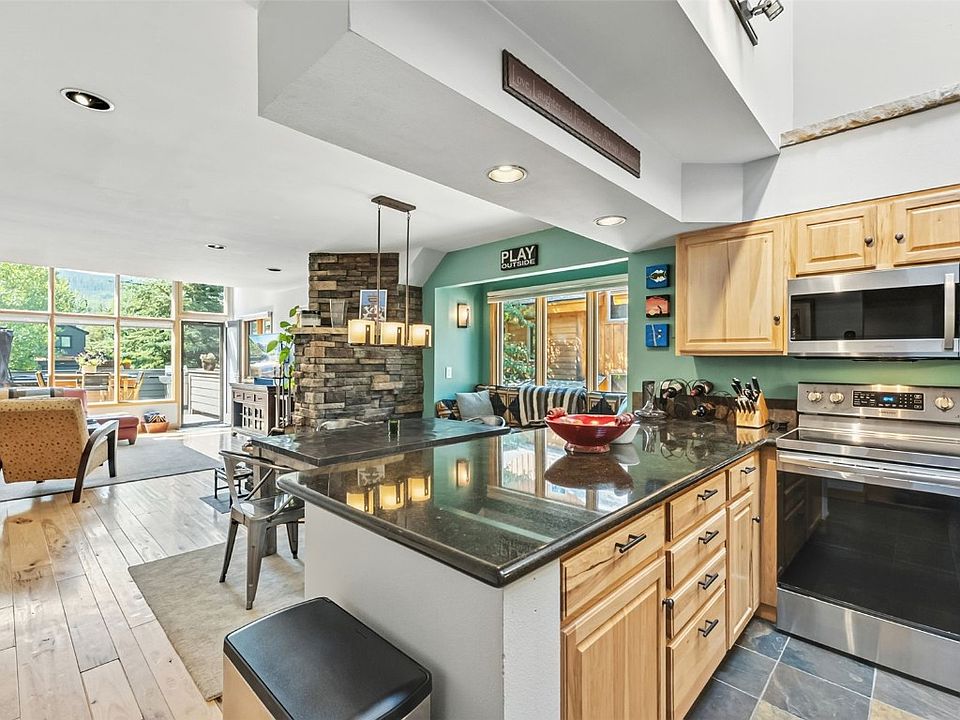 Step onto the extended private deck to take in breathtaking Peak One views while soaking in your own hot tub—an ideal retreat after a day on the slopes or trails. Inside, the spacious layout offers room to gather and relax with friends and family, while bonus rooms and ample storage provide flexibility for home offices, gear rooms, or extra sleeping space.