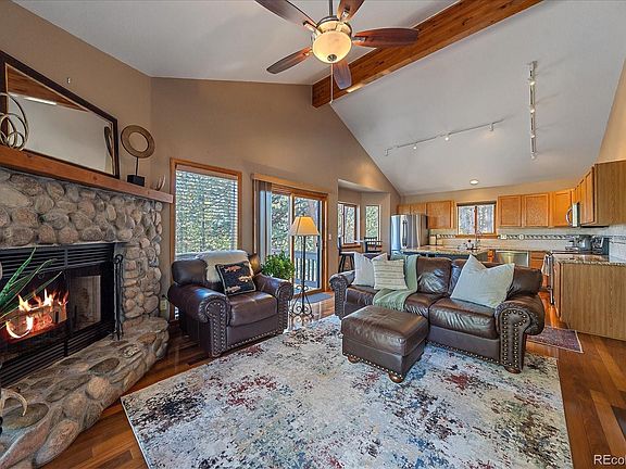Nestled in the serene landscapes of Bailey, Colorado, this beautiful mountain home offers the perfect blend of comfort and nature. Featuring three bedrooms and two well-appointed bathrooms, this residence also includes two living spaces ideal for relaxation and entertainment. One of the bedrooms is cozy, perfect for a home office or guest room, enjoy the ability to work at home with high speed fiber optic internet access, provided through Highline. The home is set on over an acre of land, providing a private retreat enveloped by lush trees. Inside, you'll find stunning wood floors that add warmth and character to the space. With plenty of deck space, you'll have the perfect spots for outdoor enjoyment and taking in the breathtaking surroundings. The property's two-car oversized garage provides ample storage and convenience. Situated on a peaceful cul-de-sac, this home is a perfect haven for those seeking a quintessential mountain lifestyle. Don't miss the opportunity to own this charming property in a highly sought-after location!