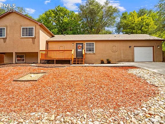 Spacious 6-bedroom, 4-bath home located minutes from Fort Carson (Gate 20), Mesa Ridge shopping, and the new King Soopers. The main level features an open floor plan with a large living area, dining space, and functional kitchen. Upstairs offers multiple bedrooms including a primary suite with private bath, while the finished basement adds additional bedrooms, bath, and rec space. The fenced backyard is designed for entertaining with a built-in bar, outdoor fireplace, and elevated retaining wall with planting area. Attached garage plus driveway parking. Conveniently situated behind Mesa Ridge High School, near elementary schools and parks, with easy access to Powers and I-25.