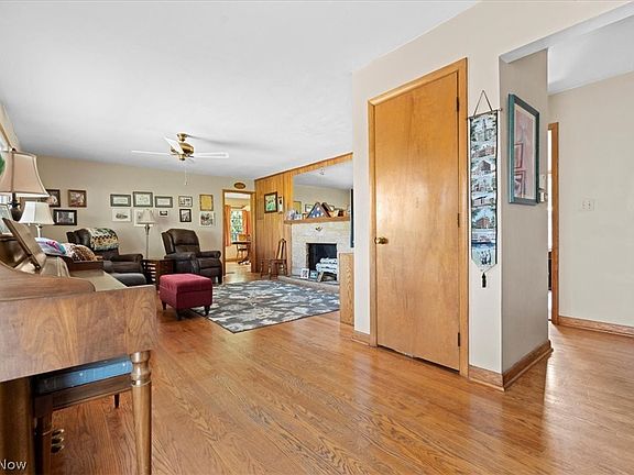 Brick Ranch on 1.76 acres with beautiful Rural Views. This 3 bedroom, 2 bath home offers an updated kitchen with newer appliances, spacious living room and a formal dining room. Other amenities include hardwood floors throughout, attached garage, patio off the kitchen, new windows, RV hook-up (electric & water), storage shed, new doors, new hot water heater, new water softener and mostly newer plumbing. The freshly painted basement offers new lighting, outdoor carpet, new wash basin, storage, workshop or rec room space and can be used for parking a car. Enjoy the serene outdoor space with mature trees and open spaces, perfect for gardening, barbecues, or simply relaxing in the fresh air.