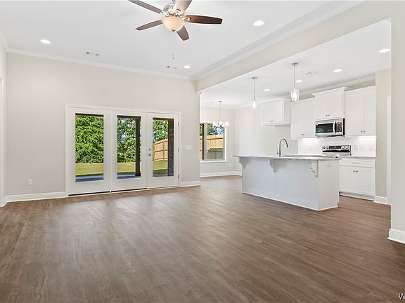 The countdown to completion is ON for this CREEK FRONT, NEW construction located by the pavilion overlooking the beautiful Hurricane Creek with fantastic views and peaceful sounds! This new construction community is only minutes from 5 Points, the VA, DCH, The University of Alabama, and Mercedes with walking trails along HURRICANE CREEK! This single level floor plan capitalizes on space with a large great room, beautiful kitchen with bar & breakfast room plus a stunning covered back patio overlooking the creek and trees as far as you can see. The primary suite showcases size and large soaking tub plus a tiled shower. This home boast granite counter tops throughout, LVP plank flooring, tankless gas hot water heater, custom cabinetry and so much more.
