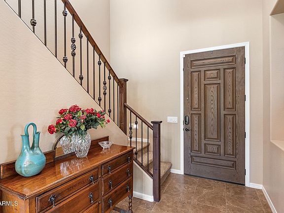 Gorgeous, immaculately maintained 4-bedroom home plus office and loft, with 3 baths and a 3-car garage, located in the friendly Autumn Park community. Open floor plan featuring a dream kitchen with upgraded cabinetry, stainless steel appliances and granite countertops. Main level includes a spacious den/office and a luxurious primary bedroom suite, granite vanity countertops, a jetted tub, and a generous walk-in closet. Upstairs hosts a versatile loft ideal for lounging or guests, and two spacious bedrooms with ample closet space throughout the home. This property showcases a resort-style backyard and a stunning pool with water features, perfect for outdoor living and entertaining. This Chandler gem is located near top-rated schools, shopping, and dining.