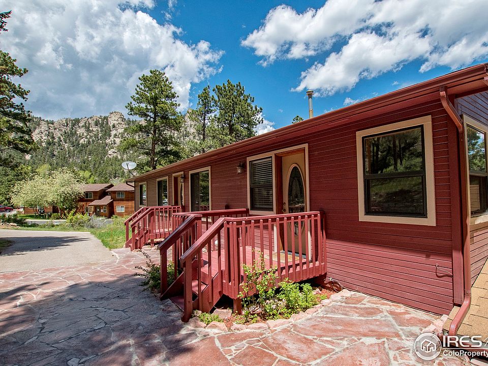 Single family or multi-family 5 BR property by Old Man Mtn. Upper unit offers 3BR/2BA w/2-car garage & 1600 SF open floor plan. Lower unit is 2BR/1BA, 1100 SF w/full kitchen & knotty pine interior. Historic location-walk to town & 4 miles to RMNP. Forested acre lot w/abundant wildlife plus storage shed. Smart property for residential buyers to realize their dream of mountain living while earning rental income, investment or single family home. Rental income is estimated. New carpet in MB in July