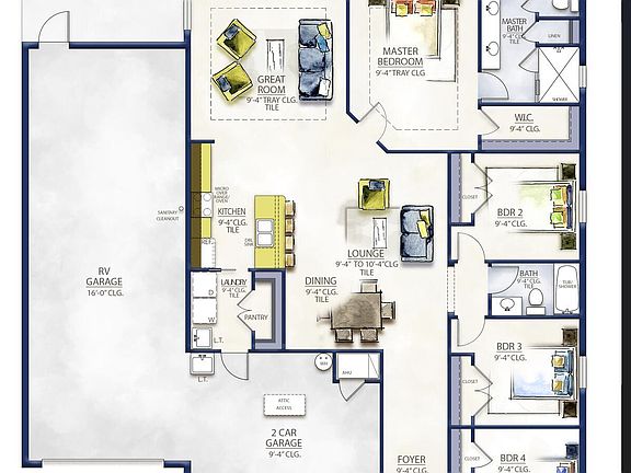 $15,000 Flex Cash offered! Featuring an RV/boat garage alongside a spacious 2-car garage, this property offers endless opportunities for storing your boats, RVs, toys, or creating a personalized workshop. Open floor plan highlighted by a massive owner's suite complete with a luxurious walk-in shower and an expansive walk-in closet. The home boasts energy-efficient impact windows throughout, an impressive 8′ front door, and soaring 9'4'' ceilings that enhance the open and airy ambiance. Porcelain wood-look tile flooring to the granite countertops and soft-close cabinetry. Modern trim and premium upgrades add to the home's upscale appeal. Photos are of previous model.