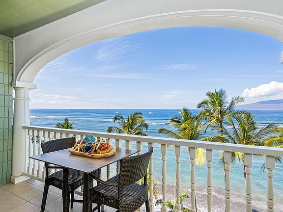 Experience the ultimate Maui lifestyle at Lahaina Shores #617, a rare hotel-zoned, beachfront resort residence just steps from the sand. This stunning studio, 1-bath condo has been beautifully reimagined with modern coastal décor curated by one of Maui’s top interior designers. Every detail has been thoughtfully selected, from the airy color palette to the tasteful furnishings that bring the island vibe indoors. The unit features brand-new appliances, upgraded finishes, and a seamless open layout designed for comfort and relaxation. Step onto your private lanai and soak in panoramic views of the Pacific Ocean, outer islands, and West Maui sunsets. As one of the only hotel-zoned beachfront properties in Lahaina, this residence offers outstanding flexibility as a luxury vacation rental or private retreat. This is your opportunity to own a turnkey, designer-styled beachfront escape in one of Maui’s most iconic resort communities.