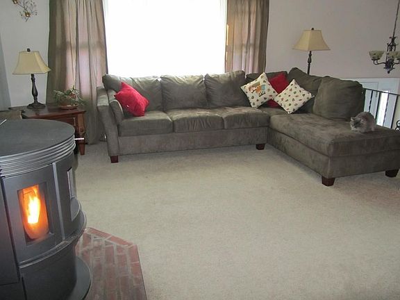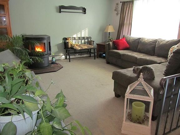 Charming and immaculate 8 room split features updated kitchen with breakfast bar and opens to formal dining room/ entertaining sized enclosed unheated porch/ living room with pellet stove keeps the chill off this winter/ 3 bedrooms up and lower level has family room with additional stove/ den, office, study or guest room and bath make this a comfortable home/ 2 car garage/shed/square footage does not include lower level.