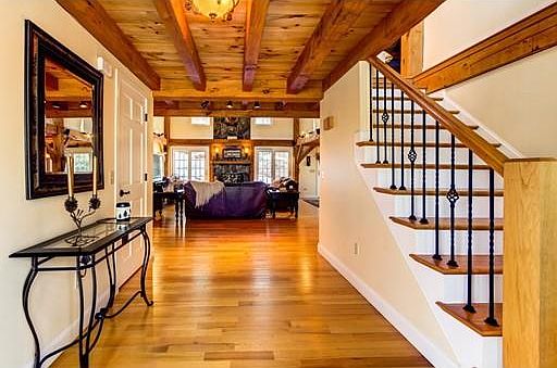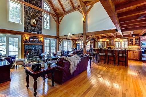 Custom Mountain Style Home built with a vacationer's imagination!Leave cookie cutter homes behind and discover this quality solid Red Oak post and beam impeccably maintained beauty!Open floor plan with a spacious great room~28ft cathedral pine ceiling and floor to ceiling stacked stone fireplace~Paradigm windows~Birch cherry stained cabinet packed kitchen with Wolf gas cook top,GE profile oven,warming drawer,Granite counters & wine refrigerator~Spacious first floor master suite and bath with jacuzzi tub,separated shower,granite counters and double vanity~The second floor features two large bedrooms with their own bath and a loft~First floor study with closet can be used as a bedroom~Stunning walkout basement with a game room that also features a custom bar with wet sink, fridge and icemaker~Professionally landscaped backyard with brick paver patio. Enjoy the gorgeous views from the mahogany front porch. You will never want to leave!