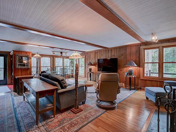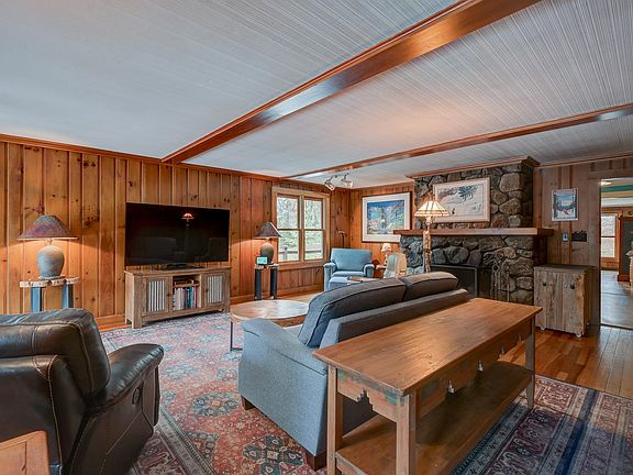 Nestled in the heart of the White Mountains in low tax Bartlett, this warm and welcoming 4-bedroom, 2-bath log-sided home, lovingly owned by the same family for 75 years, offers the perfect blend of rustic charm and modern comfort. Enjoy views to Kearsarge Mountain from the large deck, miles of hiking and mountain bike trails directly from the 1.5 acre property and easy access to year-round outdoor adventures—just under 5 minutes to Cranmore Mountain Resort and the shops and restaurants of North Conway Village. Step inside to discover the spacious family room with natural wood tones, a wall of windows, beautiful wood floors and a stunning stone fireplace —ideal for relaxing after a day on the slopes. The modern kitchen features high-end appliances, stone counters, plenty of cabinet space and a pass through to the open dining/living area with cork flooring and cozy gas log stove. You will also find 4 bedrooms, a den/office, 2 full baths and plenty of custom built-ins on this level. The full, unfinished basement offers a room that would be perfect for ski tuning or use as a workshop, lots of storage space, the new heating system, on demand hot water heater and direct access to the one car garage. Whether you're sipping coffee on the deck, hosting friends and family, or enjoying the peace and privacy of your wooded surroundings, this beautiful home, in one of the most sought-after locations in Mount Washington Valley, is your perfect mountain retreat!