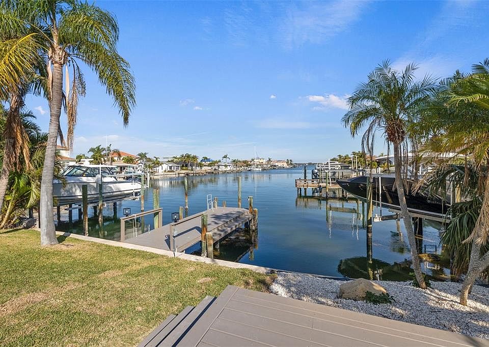 PRICED UNDER APPRAISAL VALUE! Modern Scandinavian Waterfront Home This stunning 4-bedroom, 5-bathroom home has stood the test of time and weather — has NEVER flooded per the seller. This beauty blends sleek modern design with Scandinavian elegance, offering luxurious waterfront living in a prime location. Situated on a large waterfront with sailboat water and direct, bridge-free access to Boca Ciega Bay, this property is perfect for boaters and water enthusiasts. The solid block construction provides durability and peace of mind, while the open-concept layout and modern finishes create a bright, airy interior. Every detail of this home has been thoughtfully updated, including new engineer hardwood floors, new ROOF, new HVAC and ductwork, new hurricane impact windows and doors, new bathrooms, water heater, paver driveway. The chef in your life will beam with pride at their new modern kitchen with ample cabinet and quartz countertop space — perfect for cooking up a storm with all the entertaining you’ll be doing! Better yet, the home has DOUBLE master suites, and every bedroom has a bathroom. This home is truly a gem. Outside, enjoy a sparkling pool surrounded by a stylish outdoor living area, perfect for relaxing or entertaining. The private dock offers easy access to open water, making this home ideal for those seeking a waterfront lifestyle. Located just minutes from pristine beaches, shopping, and dining, this home combines convenience with tranquility. With no history of flooding at all per the seller, it offers added security and long-term value. This is a rare opportunity to own a fully updated, move-in-ready waterfront retreat!