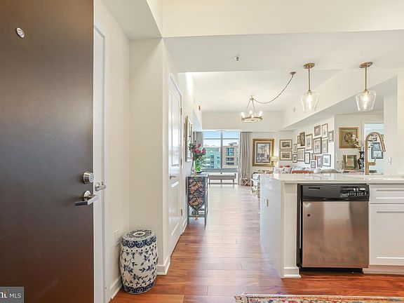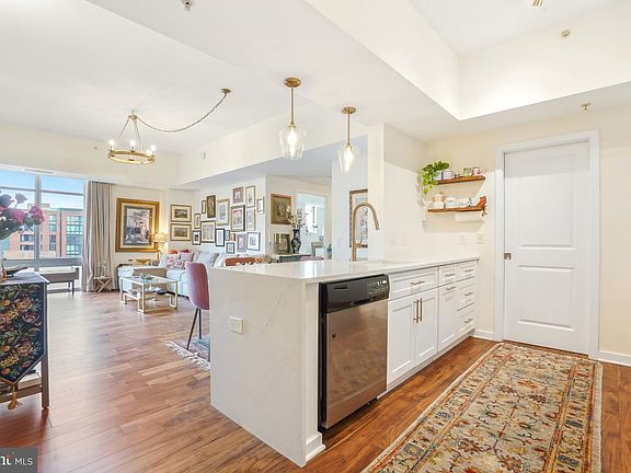 Experience elegant city living in this spacious two-bedroom, 2 bathroom condo with garage parking perched on the 11th floor of the premier K at City Vista. Designed for both comfort and style, this light-filled home features an open-concept layout, accented by beautiful hardwood floors. Step inside to a bright, airy home featuring an open-concept layout and beautiful hardwood floors throughout. The recently updated kitchen is equipped with Whirlpool stainless steel appliances, gas cooking, ample cabinetry, and a large pantry with a pocket door. The breakfast bar offers additional seating and seamlessly connects to the spacious living and dining area, where oversized windows overlook the peaceful courtyard below. Both bedrooms are generously sized with large windows and excellent closet space. The primary suite includes a full bathroom with a walk-in shower and a spacious linen closet. The second full bathroom features a tub/shower combo, ceramic tile flooring, a medicine cabinet, and plenty of extra storage. Additional highlights include in-unit laundry with a stackable washer and dryer, and a designated underground garage parking space. Residents of City Vista enjoy resort-style amenities, including front desk concierge, a rooftop deck and pool, library, community room, private 1-acre park, and secure garage parking. Situated in an unbeatable location, you’ll be just steps from Safeway, VIDA Fitness, Sweetgreen, Busboys and Poets, and more. With Gallery Place and Mt. Vernon Square Metro stations only three blocks away, commuting is effortless. This is urban luxury at its finest—don’t miss out!