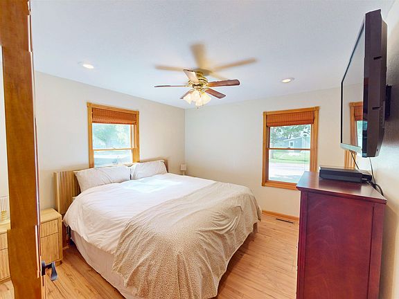 Beautifully updated 3-bedroom, 2-bath home situated on a spacious corner lot. The main level features an open-concept layout with two generously sized bedrooms and a full bath. Recent updates include brand-new laminate flooring and fresh paint throughout. Upstairs offers a versatile third bedroom—perfect as an office or bonus room. Enjoy peace of mind with a brand-new roof (2025) and new stainless steel appliances—all included. The full basement is clean and well-maintained, featuring an updated 3/4 bath, a workshop area, and excellent potential for future finishing. Step outside to a huge fenced-in yard with a deck, firepit, and plenty of space to entertain or relax. There’s also an oversized 1.5-stall garage plus an additional 1-stall garage—offering a total of 2.5 stalls for parking and storage. This move-in ready home has been well cared for and is a must-see!