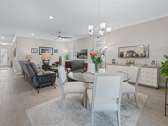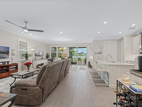 Experience unparalleled luxury and breathtaking LAKE VIEWS every day in this stunning Clifton model by D.R. Horton in South Naples' prestigious Tamarindo community! This exquisite property offers breathtaking views of the serene lake and is in close proximity to the amenity rich clubhouse. The highly desired floor plan boasts three spacious bedrooms and two opulent bathrooms. The attached 2-car garage with added overhead door system and shelves provide ample space for your vehicles and storage needs. Step inside to find an array of impressive features, including stunning light gray wood grain porcelain tile flooring, gleaming quartz countertops, and elegant 5” crown molding. The 8 foot doors and impact-resistant windows and doors offer both style and protection against Florida’s weather. The gourmet kitchen is a chef's dream, complete with a premium stainless steel appliance package, including an induction/air-fryer range and refrigerator by KitchenAid, a spacious pantry with custom built California Closet shelving, a central island, and 42” built-in cabinets with soft-close mechanisms and under-cabinet lighting. Each of the three bedrooms is carpeted for added comfort, with the master suite featuring two generous walk-in closets with custom California Closet shelving and a spa-like master bathroom with dual sinks and a walk-in shower. All of the bedrooms are equipped with upgraded walk-in closets and fan fixtures. The in-residence laundry room is thoughtfully designed with a laundry sink, built-in cabinets, and a Whirlpool washer and dryer for your convenience. Additional upgrades enhance the home's elegance and functionality, including plantation shutters on all windows, an accent wall in the primary bedroom, a driveway and patio extension, and added slider door handles. The lanai features a privacy screen for added seclusion, while the home is secured with an ADT security system. The Tamarindo community is an emerging gem, offering an array of amenities including a resort-style lap lane pool, a state-of-the-art fitness center, and multiple bocce and pickleball courts. With low HOA fees, flexible pet policies, and the ability to add fencing for your children and pets, this luxurious home is the perfect sanctuary for discerning buyers and their furry companions. Experience the best of upscale living in this exceptional lakefront property.