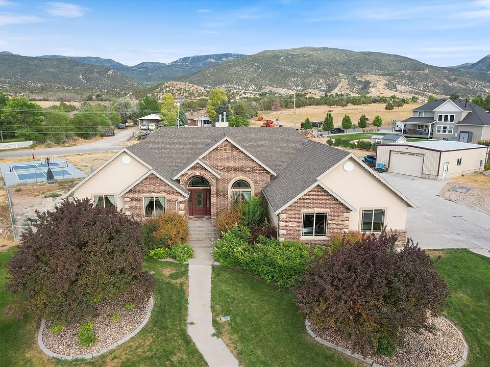 Nestled at the base of Ephraim Canyon on a quiet cul-de-sac, this beautiful home welcomes you with an open-concept floor plan where living, dining, and kitchen spaces flow seamlessly-perfect for hosting intimate family gatherings or celebrations. The Sellers regularly have gatherings with 50+ guests. Inside, you'll find 7 spacious bedrooms, 3 full baths (option for a 4th), formal living room and an office, providing space for both privacy and productivity. Natural light fills the home, highlighting warm finishes and thoughtful details that make every space inviting. Step outside to enjoy the covered patio, perfect for summer barbecues, a pickleball-sport court ready for friendly matches, and a 30' x 42' shop (separate power meter and lift included) -ideal for workshop projects, RV storage, and all your canyon adventure gear. Whether you're entertaining, working from home, or heading up the canyon for hiking, biking, SxS and snow sports, this property delivers on space, function, and lifestyle.
