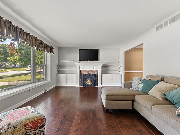 CHECK OUT THIS GREAT PRICE!!! This stunning 4-bedroom, 3-bathroom home offers 3,000 square feet of living space including a finished basement perfect for indoor entertaining. Step into a spacious living room adorned with beautiful hardwood floors, a charming bay window, and a cozy gas fireplace, surrounded by stylish built-in shelving. The kitchen features stainless steel appliances, a large pantry with ample counter space. Next to the kitchen you will find a large dinning room for dinner seating. 2 of the 4 bedrooms are on the main floor & the Primary along with another bedroom is situated on the upper level. Enjoy movie nights in the finished basement where there is a dedicated indoor theater area including a wet bar, designed for entertainment and relaxation.Your backyard oasis includes an inviting in-ground pool, along with a pergola & a lovely courtyard space completely private in a fully fenced area, beautiful landscaping perfect for outdoor gatherings! Enjoy spectacular views and experience fireworks from the Lake County Fairgrounds or enjoy exceptional prime parade seating right on Main Street. Walking distance to all of Crown Points fine dining on the square! SELLER IS ALSO PROVIDING A HOME WARRANTY WITH PURCHASE OF THIS HOME!! This home has it all, schedule your showing right away!