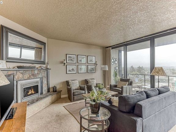 Don't miss this rare opportunity to own a highly desirable Sand & Sea condo in the heart of Seaside! Located on the 5th floor, this nicely maintained unit features an open-concept layout with a spacious kitchen, two bedrooms, two bathrooms, an in-unit washer and dryer, and a cozy gas fireplace. Floor-to-ceiling windows fill the home with natural light, while the covered balcony showcases views of the ocean, Tillamook Head, and the surrounding mountains. Sold furnished. The Sand & Sea complex offers fantastic amenities including an indoor pool, sauna, and elevator access. Just steps from the beach and promenade, and only one block from Seaside's vibrant downtown with shops, restaurants, & year-round events.Perfect for full-time living, a weekend retreat, or a short-term rental investment. This is a must see!! **AVAILABLE FOR SHOWINGS 10-11 through 10-17**