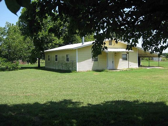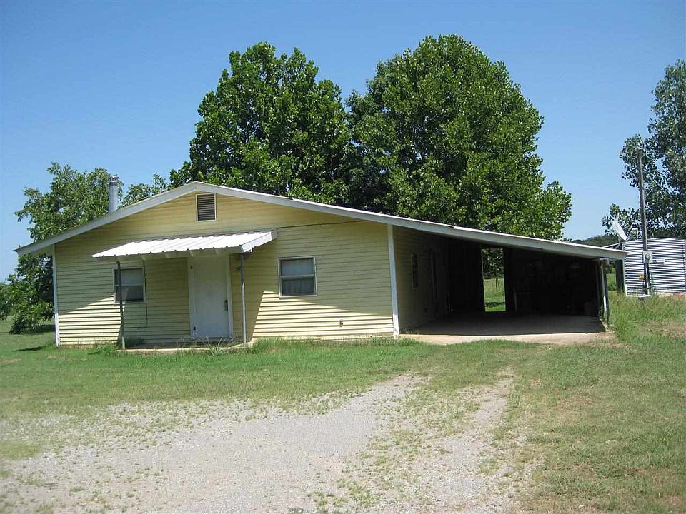 Home and 10 acres in excellent location, one mile west 1/2 South of Mead and about two miles from Texoma Lake. The 1988 built home is 1200 sq. ft. with 3 bedrooms, 1.5 baths and one car carport. The kitchen/dining room and laundry have vinyl flooring, with carpet in remaining rooms. Smoke stack for a stand alone wood/pellet stove installed in ceiling, but never used. The 10 acres is flat open pasture with one pond. Livestock allowed. "Sold As Is"